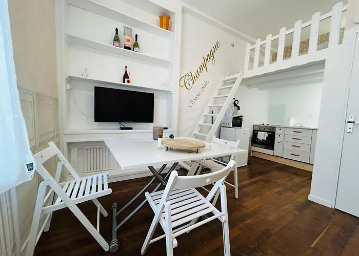 Az apartman 1 km-re fekszik az Autótörténeti Múzeum térségétől és 1,1 km-re a Médiathèque Jean Falala területétől. A vendégek olasz ételeket próbálhatnak ki a Milano Pizza pizzéria, amely 300 méter távolságra helyezkedik el. Ez Le Champagne Coquebert - Centre-Ville apartman közvetlen hozzáférést biztosít az Eglise Saint-Andre területéhez.